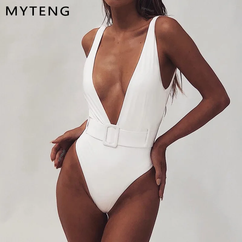 Сплошной купальник с пряжкой и поясом, Цельный купальник, женский Глубокий v-образный вырез, бикини, женский купальник, бикини, новинка 2019