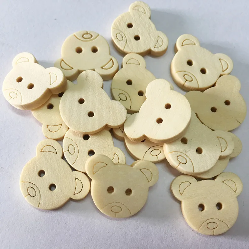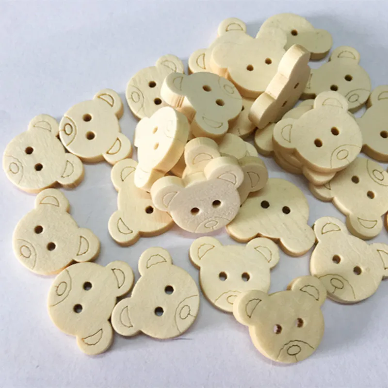 100pcs/lot lovely small teddy bear wooden head buttons diy crafts stitching Scrapbook retail wholesale support