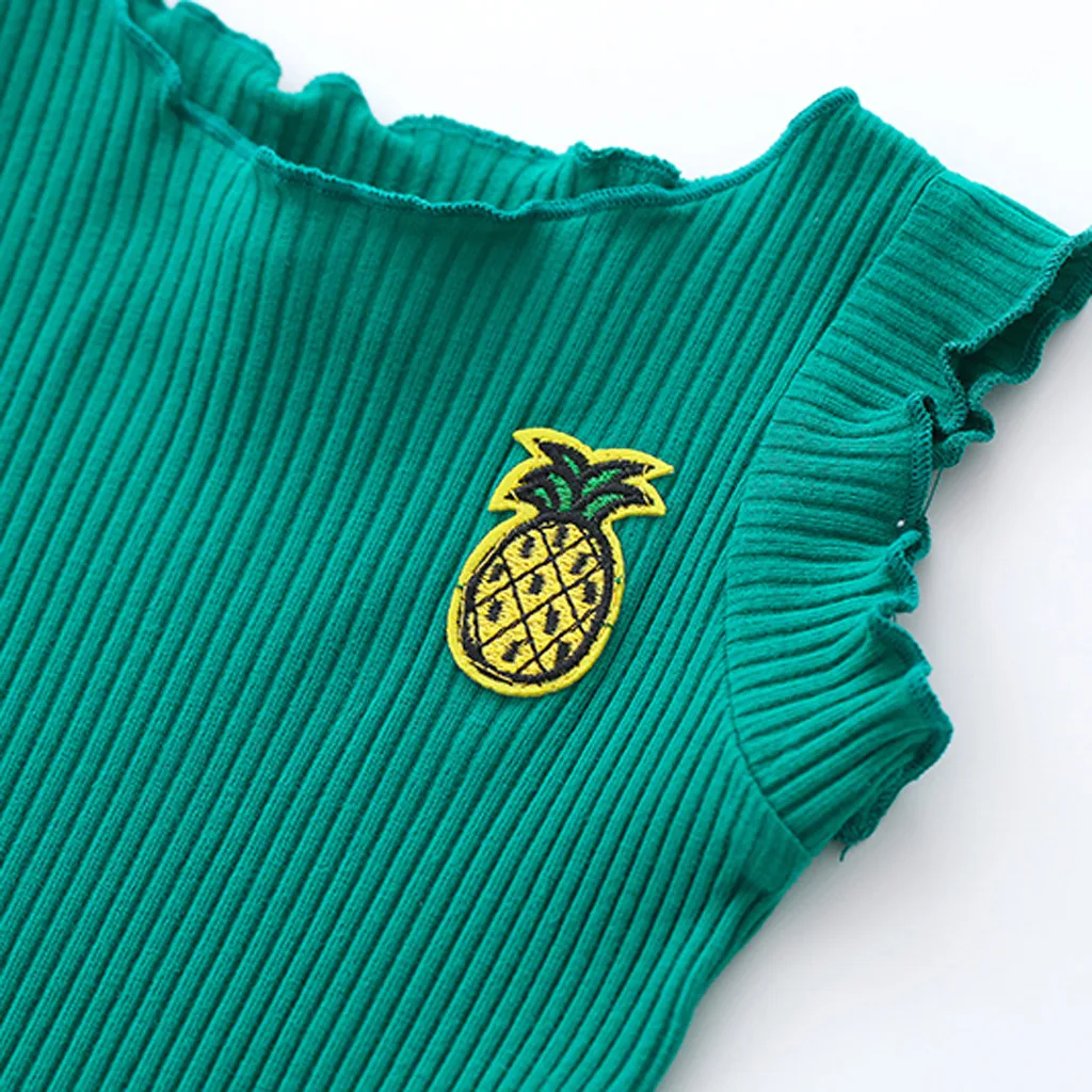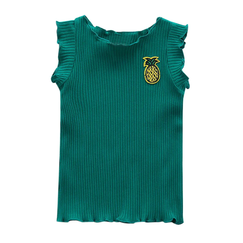 Однотонная футболка для новорожденных и маленьких девочек; топы без рукавов с вышитыми фруктами для малышей; топы; одежда; # BL2