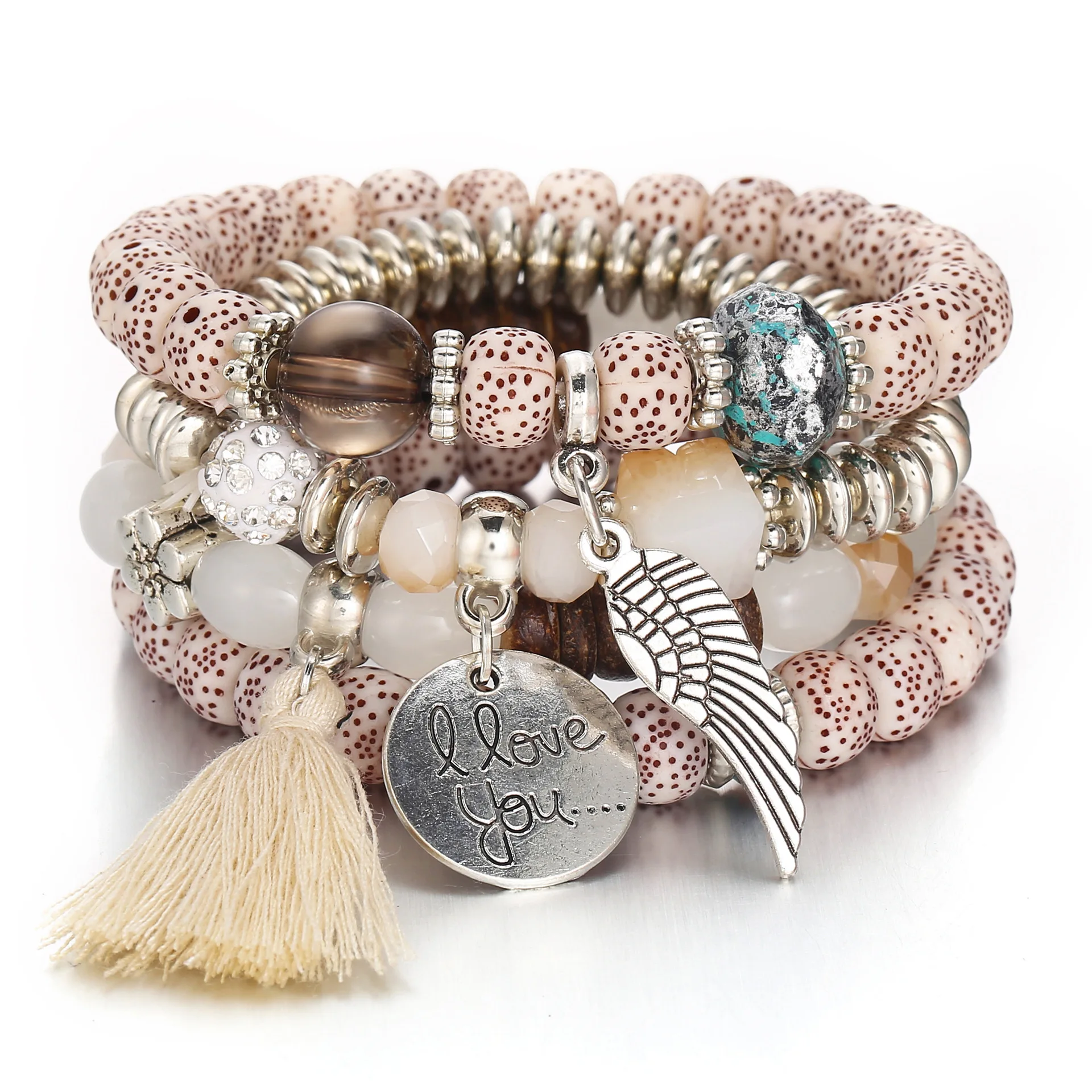Богемные Кристальные браслеты из натурального камня с бусинами для женщин 2019 винтажные Подвески с кисточками женские ювелирные изделия Pulseira Feminina