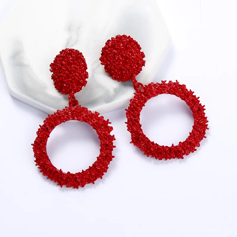Винтажный геометрический круглые Висячие серьги для женщин ювелирные изделия красные черные металлические украшения эффектная Подвеска Серьги