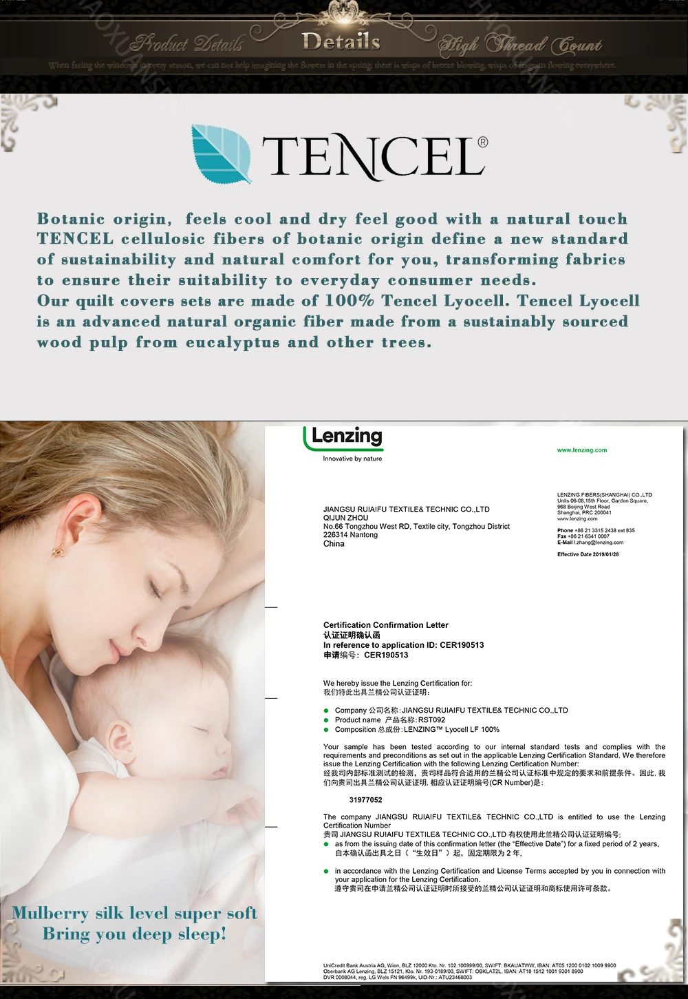 Волокна в наших листах, естественно, мягкие на ощупь и обеспечивают длительный комфорт. Даже если смотреть под электронным микроскопом, волокна имеют гладкую поверхность, и мягкость лучше, чем у шелковицы (но блеск не так хорош, как у шелковицы), что обеспечивает исключительный комфорт и мягкость даже для самой чувствительной кожи.