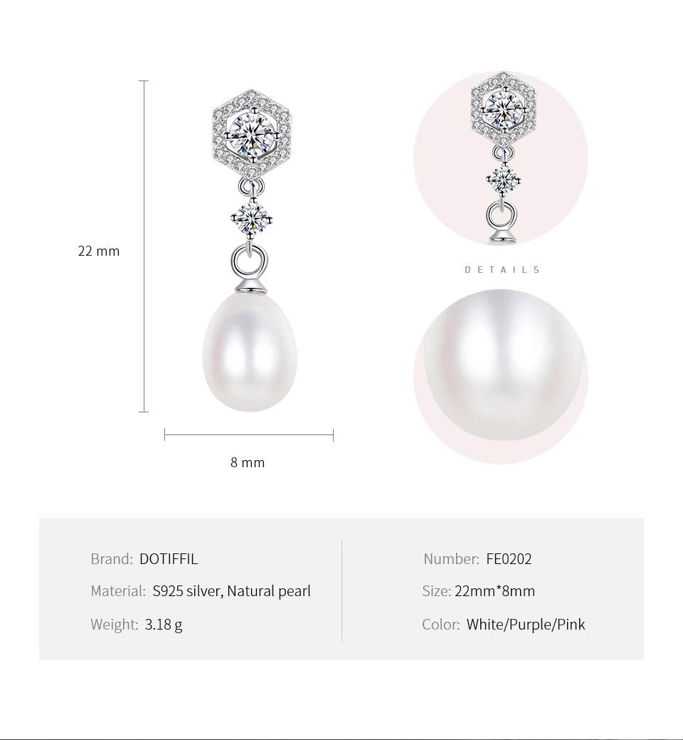 Бренд: DOTEFFIL Тип камня: 100% натуральный пресноводный жемчуг Цвет жемчуга: белый, розовый, фиолетовый Жемчужный Блеск: AAAAA Поверхность жемчуга: без дефектов Размер жемчуга: 8 мм Длина: около 22 мм Вес: 3,18 г Материал металла: 100% Стерлинговое Серебро 925 пробы Металлический штамп: S925 Упаковка: Подарочная сумка Они модные и элегантные, подходят для ношения круглый год Вы можете носить его на свадьбу/вечеринку/помолвку/годовщину Роскошная блестящая ручная работа/высокое качество