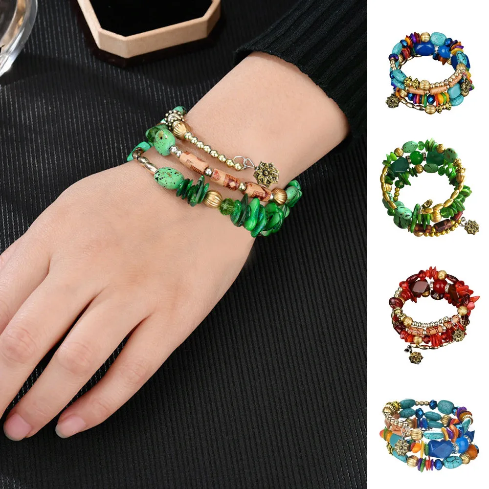 1 шт. BD Новая мода Экзотический Национальный вкус Meltilayer браслет из цветных камней