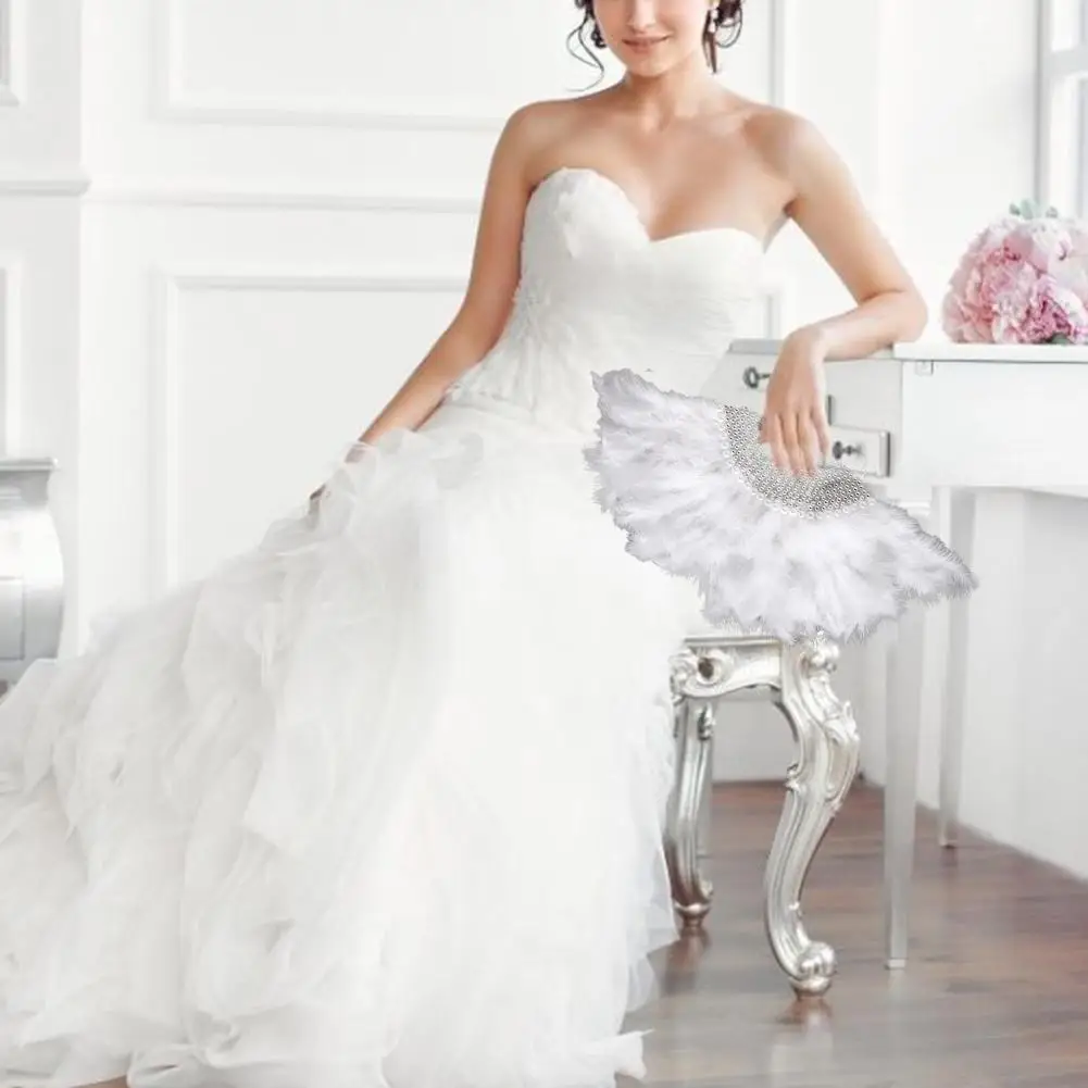 2. Элегантный стиль: веер украшен перьями и жемчугом, а элегантный дизайн подходит для вашей свадьбы.