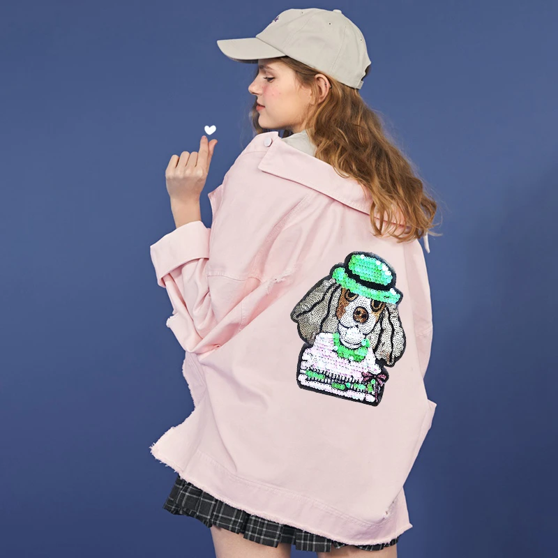 Новое поступление шапка щенок мопса нашивки в форме собак пришивная декоративная заплатка для сумки для одежды большой мотив расшитая блестками Вышивка Аппликации