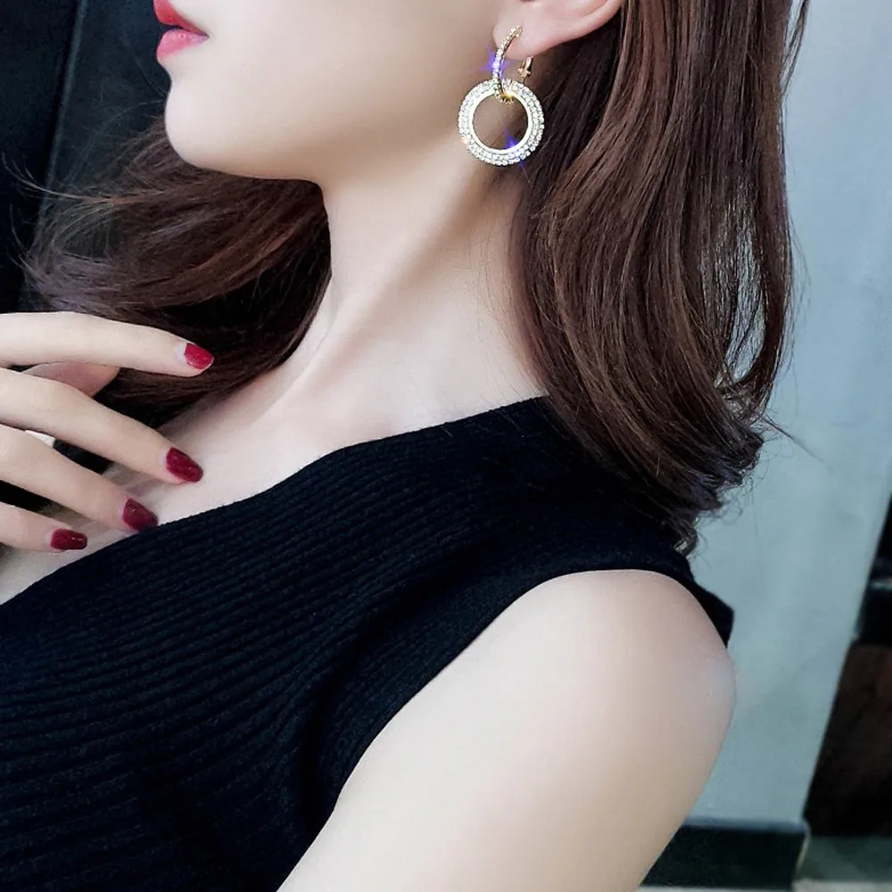 Новые модные роскошные круглые серьги с бриллиантами для женщин, серебряные золотые серьги-гвоздики с розовым золотом