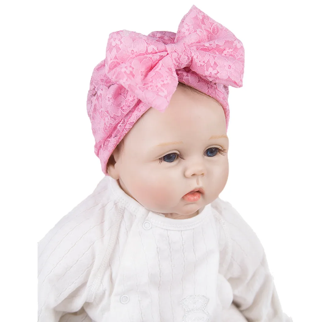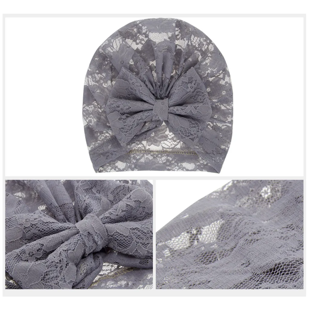 Шапка головной убор с кружевным бантом для новорожденных мальчиков и девочек