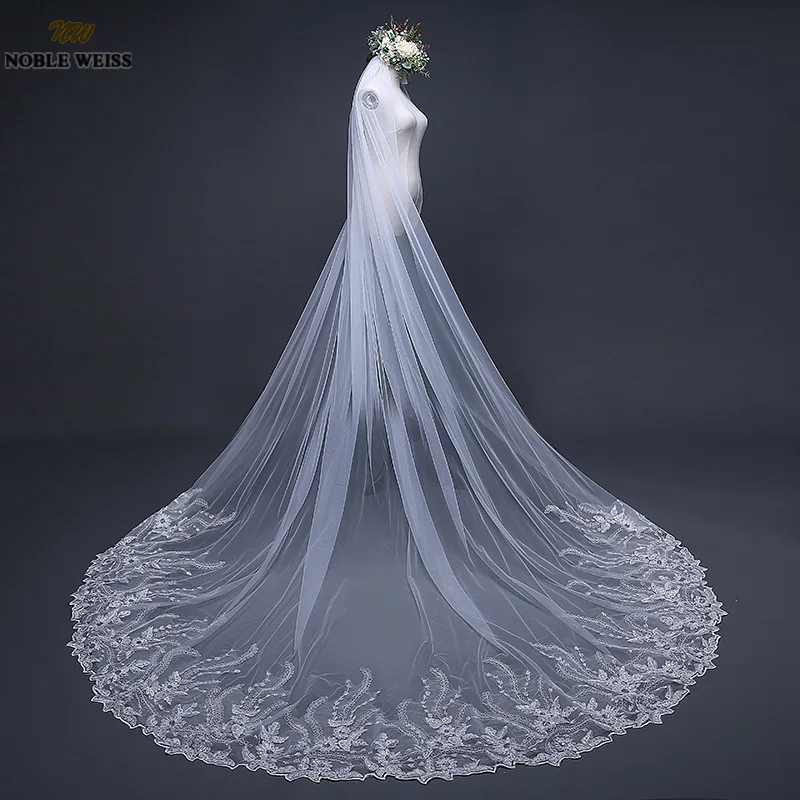 Длинная Соборная Свадебная Фата с расческой кружево один слой аксессуары