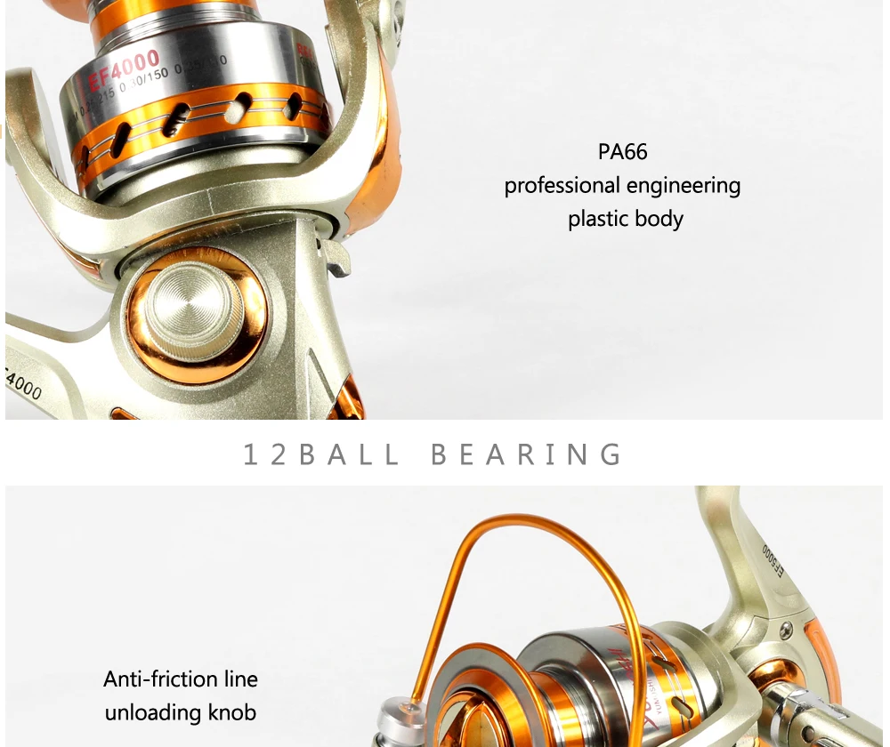 Краткое описание: Рыбалка спиннингом светильник вес 12BB рыболовная удочка и, как солидный исполнитель на профессиональном турнире, идеально подходит для рыбаков на выходные, что вы знаете, как для того, чтобы цель крупную рыбу. Эти катушки для спиннинга обеспечивают безопасную рыбную ловлю, когда все на леске. Он укреплен металлическим основным валом и элементами, оснащен 12 шариковыми подшипниками, вкл./выкл., с защитой от обратного хода. Все это делает его более конкурентоспособным среди Спиннинговых рыболовных катушек. Основные Особенности: -Ультратонкий дизайн корпуса, красивый, легкий и удобный светильник. -Высокопрочный инженерный материал, прочный и долговечный. -Складные руки высокой прочности, могут быть изменены. -Два вида чашек для цветной линии ковки. Конструкция выхлопного отверстия. -Деревянная ручка, удобная в эксплуатации. -Основная Конструкция выполнена из высокопрочного пластика, чашка изготовлена из металла (алюминиевого сплава) Тип передаточное число Шарикового подшипника, вес линии (мм/м) EF1000 12BB 5,5: 1 220 г 0,18/245 0,20/200 0,25/125 EF2000 12BB 5,5: 1 230 г 0,18/255 0,20/215 0,25/135 EF3000 12BB 5,5: 1 260 г 0,18/285 0,20/230 0,25/150 EF4000 12BB 5,2: 1 290 г 0,25/215 0,30/150 0,35/110 EF5000 12BB 5,2: 1 310 г 0,30/175 0,35/130 0,40/100 EF6000 12BB 5,2: 1 400 г 0,35/195 0,40/150 0,50/95 EF7000 12BB 5,2: 1 430 г 0,45/140 0,50/115 0,50/80 EF8000 12BB 4,1: 1 640 г 0,40/395 0,50/250 0,60/175 EF9000 12BB 4,1: 1 660 г 0,40/485 0,50/310 0,60/215 Посылка в комплект входит: 1 x Рыболовная катушкаСмотрите так же другие товары: