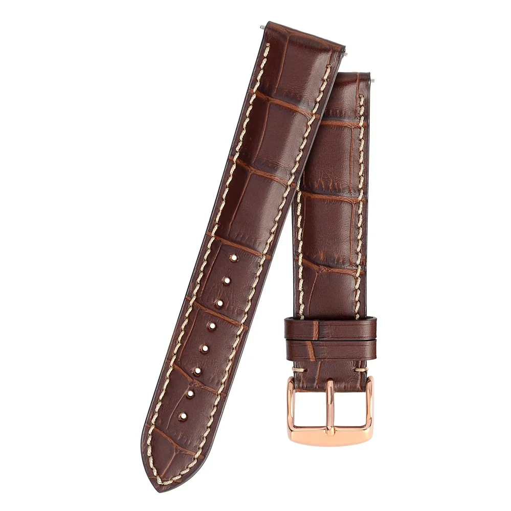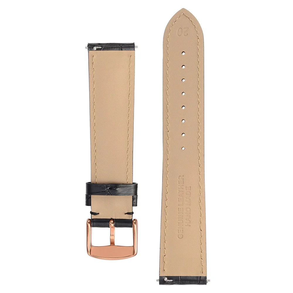 Кожаный ремешок для часов Anbeer, 18 мм, 20 мм, 22 м, ремешок для часов из телячьей кожи аллигатора, для мужчин и женщин, мужской ремень с застежкой из розового золота