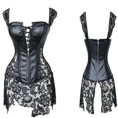 Высокое качество сексуальное бюстье, тренажер для талии черного размера плюс 6XL талии Cincher корсет для тела Cupless кожаный корсет платье