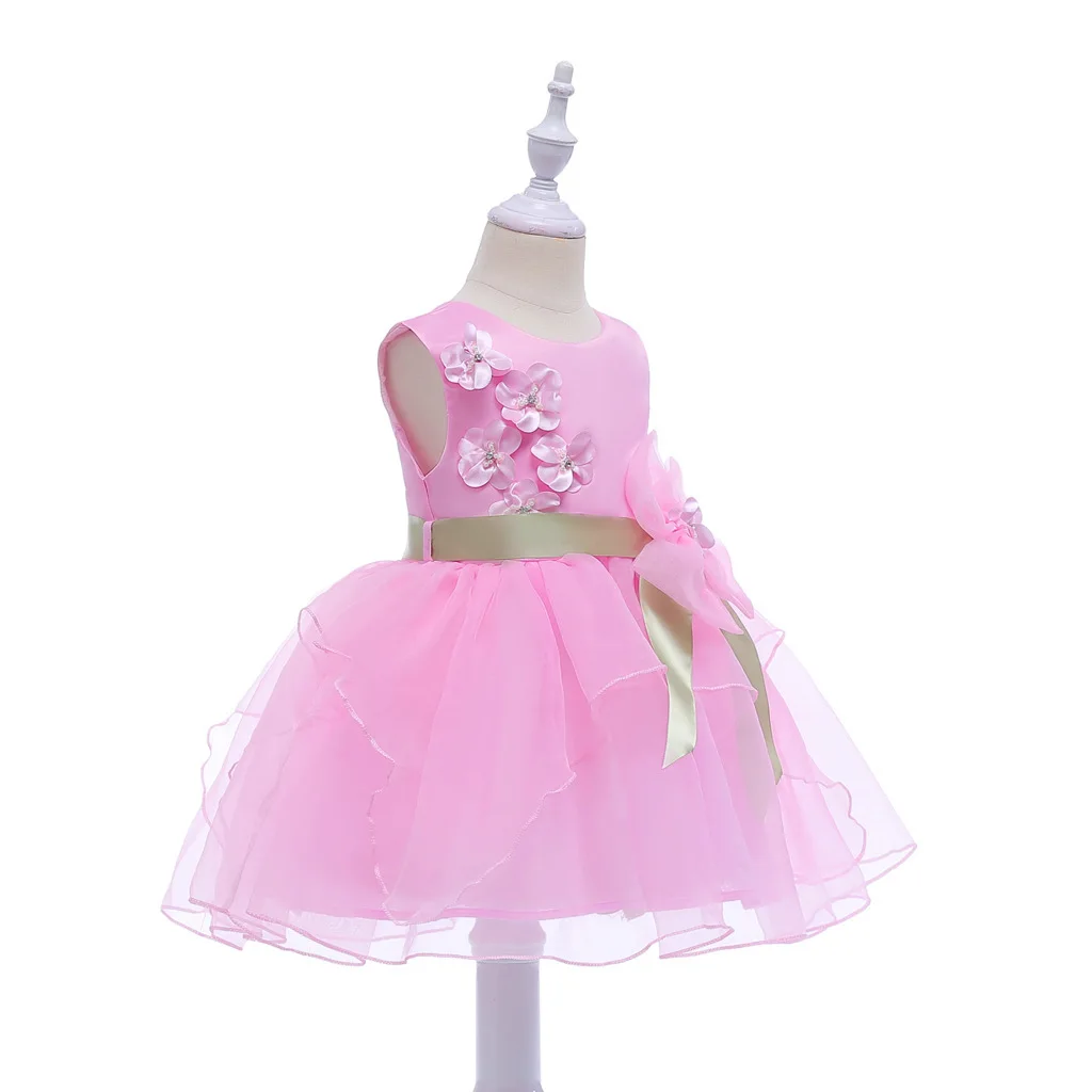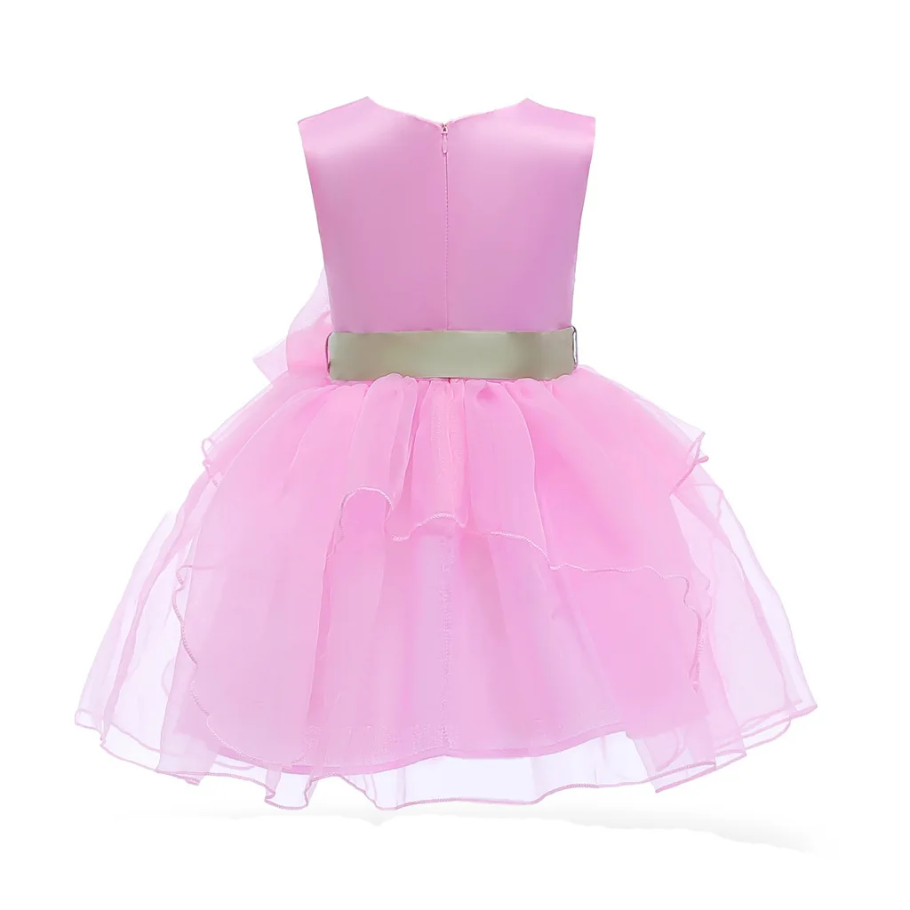 Girl Dress Princess Flower Bow Lace Pink Fluffy Children's Clothing For Children Boutique Apparel k1 | Детская одежда и обувь