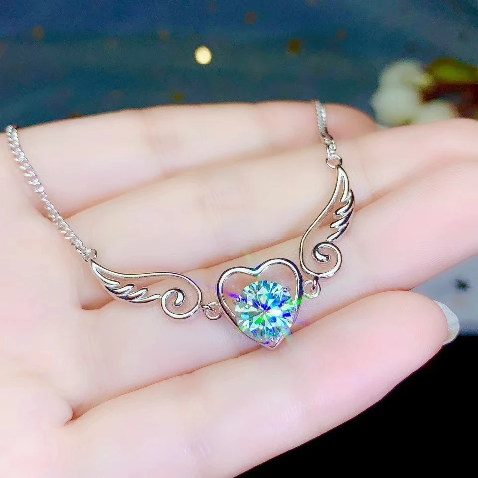Ослепительный цветной серебряный браслет moissanite в форме пера ангела, изящное ювелирное изделие, 925 пробы Серебряный подарок на день рождения для девочек