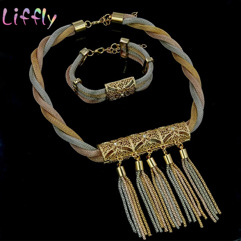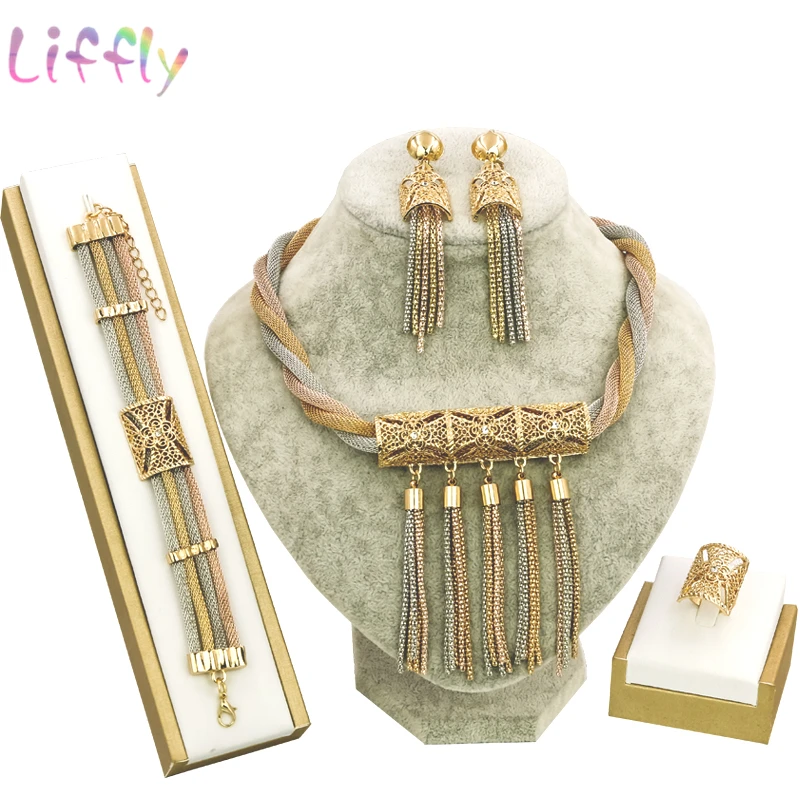 Классическое длинное ожерелье, кристальная подвеска, ювелирные изделия из Нигерии, наборы для женщин, Свадебный комплект ювелирных изделий, ожерелье невесты, серьги, кольцо, браслет