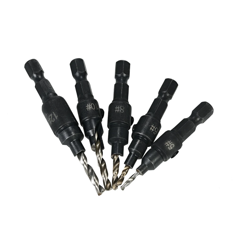 Эти столешницы 5 шт. подходят для бурения менее 25HRC твердости заготовок, таких как углеродистая сталь, листовое железо, изоляционная доска, ПВХ доска, жесткие леса, дерево и т. Д. Они могут просверлить затонувшие отверстия для винтовой крышки во время сверления винтового отверстия и держать их на том же осевом, Также подходит для буровых машин с цангами или адаптерами.