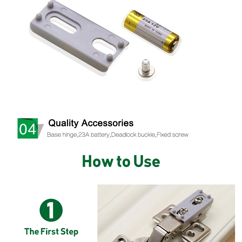 Свет шкафа имеет 3 шт светодиодных бусин и Он управляется батареей 23A 12 V(В комплекте)