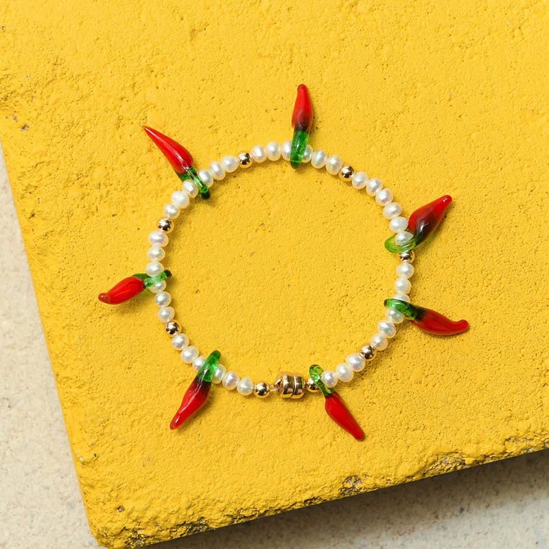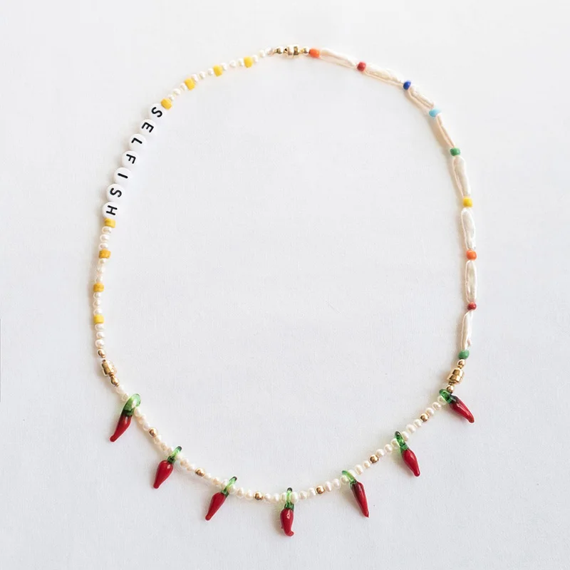 Ожерелье в стиле бохо largos grandes mujer, ожерелье из 2019 пресноводного жемчуга, ожерелье с подвесками из стекла красного цвета кулон в виде перчика Чили, Женское Ожерелье