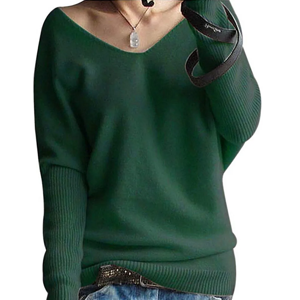 Fashion Women Winter Batwing Sleeve Solid Knitted Sweater Pullover Tops Blouse