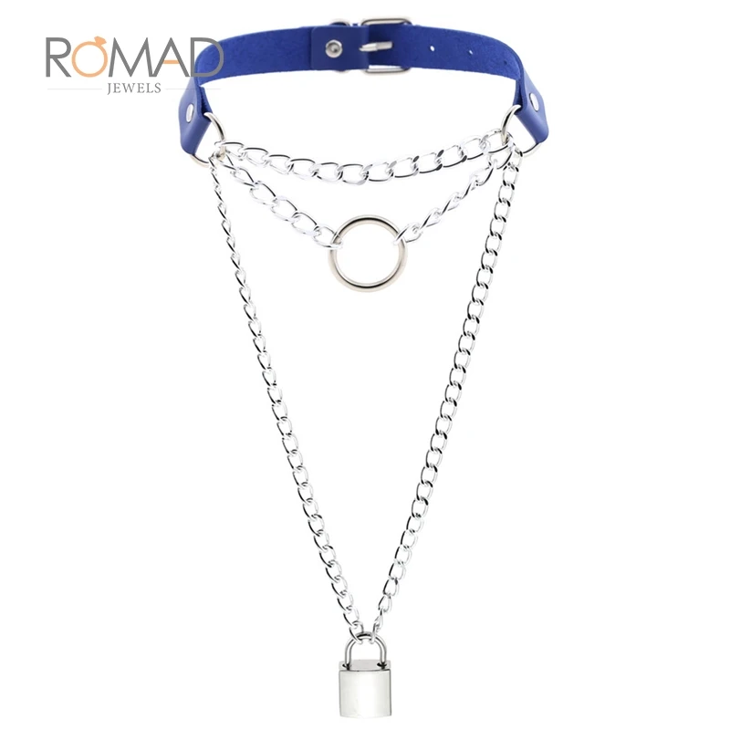 Готические многослойные ожерелья для женщин, цепочка с замком, ожерелья в стиле панк, массивная цепочка на ключицу, круглые ожерелья, многослойные ювелирные изделия, подарки