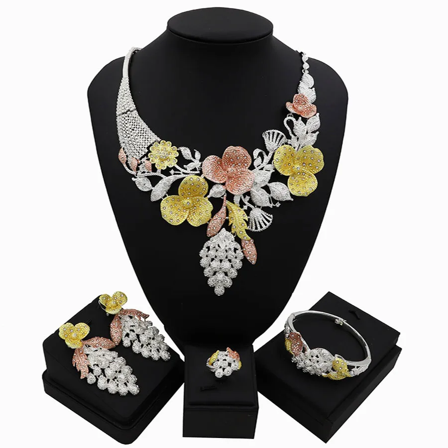 TSROUND красочные богатые кулон виноград цветок ожерелье для женщин африканский дубай ювелирные наборы обручальное кольцо браслет серьги набор