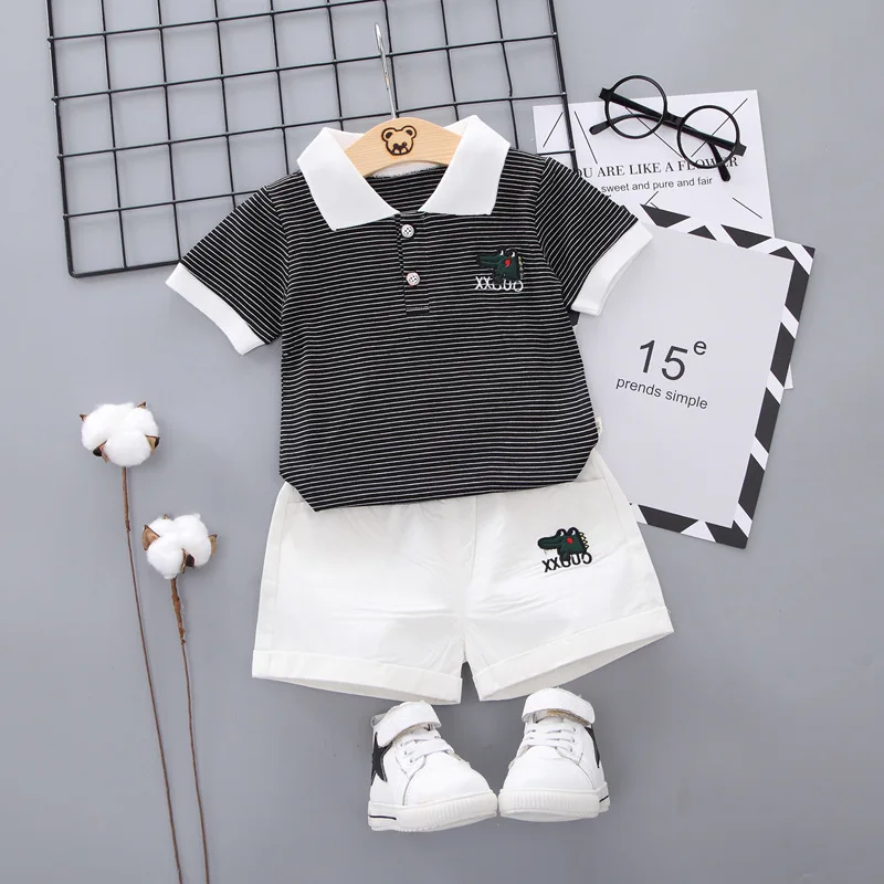 Комплект одежды для мальчиков поло костюм футболка с шортами полосатая коротким