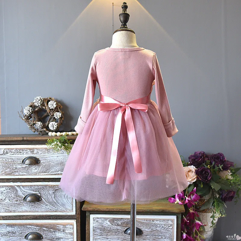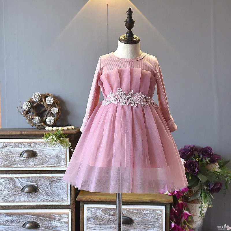 Новинка осени 2019 платье принцессы для девочки с длинным рукавом розового