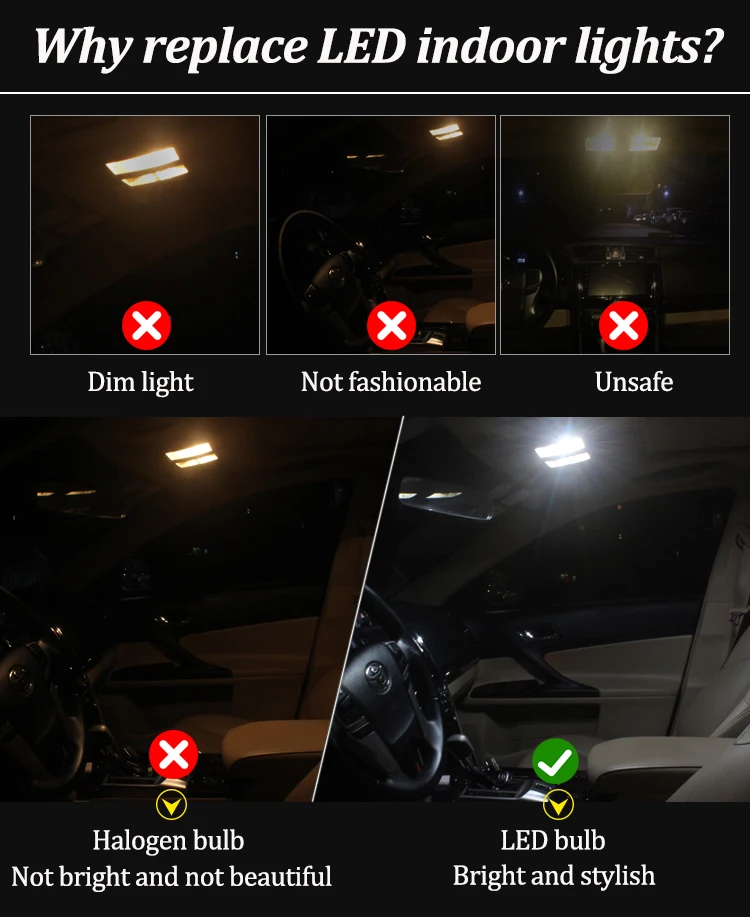 ▶Каждый светильник маркирован и упакован отдельно, вы узнаете, какие лампы установить где ▶Предоставляет эти яркие бесцветные светодиодный лампы, идеальную замену оригинальные лампочки, это делает более яркое Внутреннее освещение для вашего автомобиля. ▶Все светодиодный лампы являются 100% Canbus без ошибок подключи и играй, без каких-либо изменений. ▶Изображения продукта для светодиодный лампы типа приведены исключительно в справочных целях, мы предоставим вам совместимость Светодиодный внутренний светильник наборы в соответствии с вашим автомобилем.