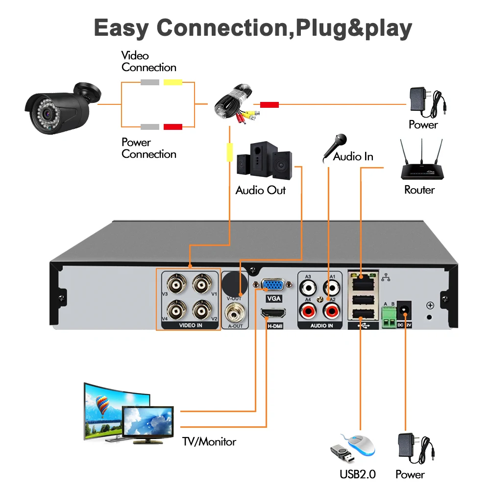 (5) поддерживает 2CH 1080P AHD + 2CH 1080P ip-камера, 2CH воспроизведение