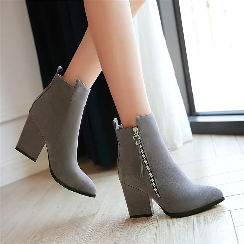 Женские ботинки с острым носком, на толстом каблуке, водонепроницаемые, большие размеры, 2019