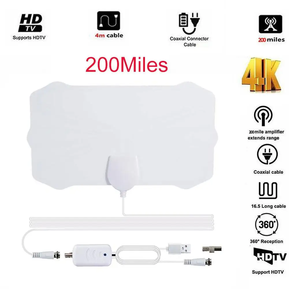 200 Miles 4K 1080P Indoor Digital HDTV Antenna Aerial with Signal Amplifier