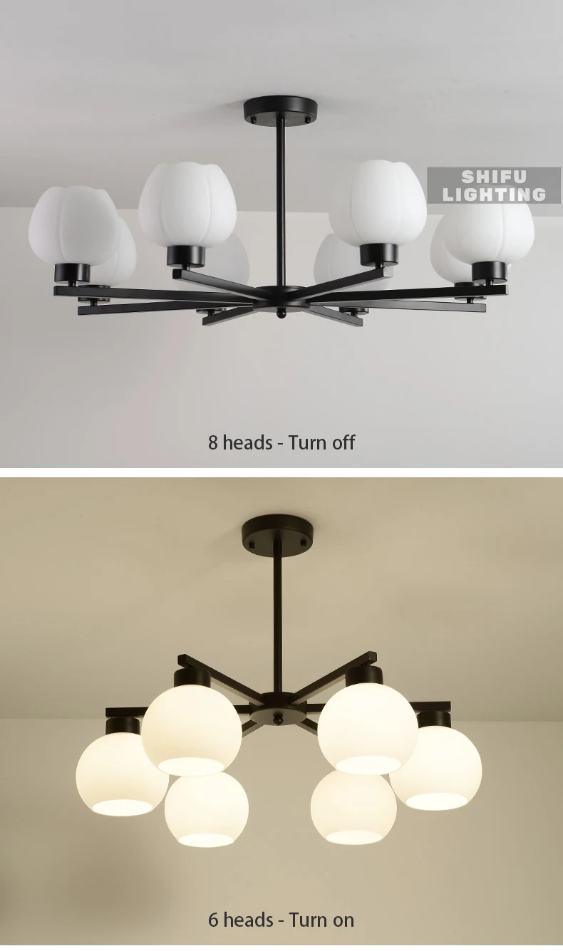 3 головки диаметром 55 * высота 55 см, подходит для 5-10 ㎡. Небольшое пространство комнаты как столовая, спальня, фойе. 5 головок диаметром 65 * высотой 55 см, подходит для 10-15 ㎡. Среднее пространство, как спальня, кабинет, столовая. 6 головок диаметром 70 * высотой 55 см, подходит для 12-18 ㎡. Среднее пространство, как гостиная, спальня, столовая. 8 головок диаметром 85 * высотой 55 см, подходит для 15-20 ㎡. Большая комната, как гостиная, спальня, кабинет. 10 головок диаметром 105 * высотой 55 см, подходит для 18-25 ㎡. Большая комната, как гостиная.