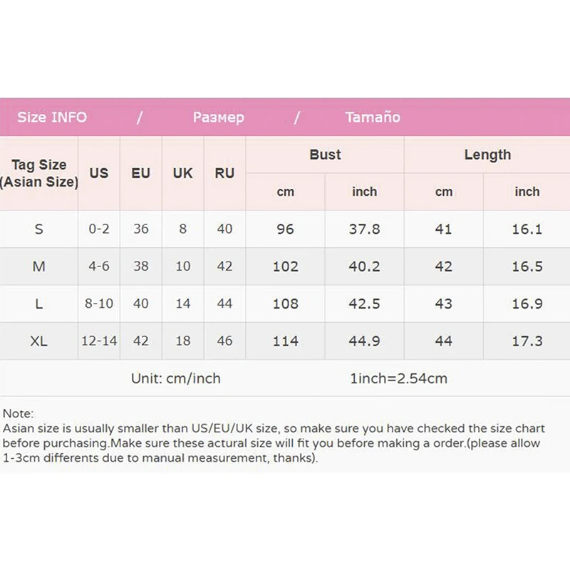 3. Азиатский размер меньше, чем Европейский/американский/Британский размер, пожалуйста, сравните детальные размеры с вашими перед покупкой.