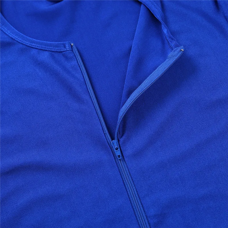 Короткие рукава и круглый вырез, спереди застежка-молния начинается с воротника.