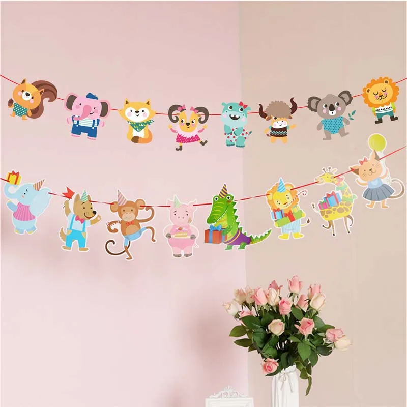 Милый баннер «С Днем Рождения» Мультяшные животные подвесные гирлянды на тему зоопарка День Рождения флаг баннеры для мальчика девочки подарок для детей