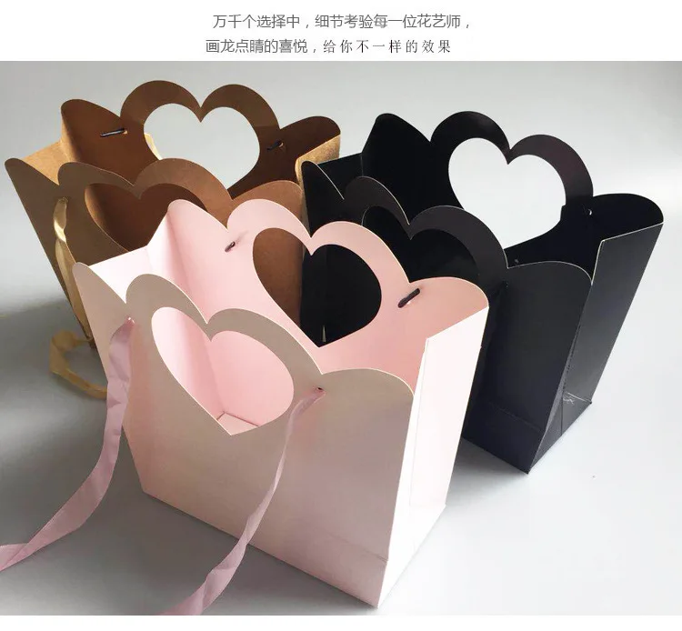 Подарочный пакет для цветов утолщенный водонепроницаемый крафт-бумажный пакет выдолбленная Цветочная корзина в форме сердца