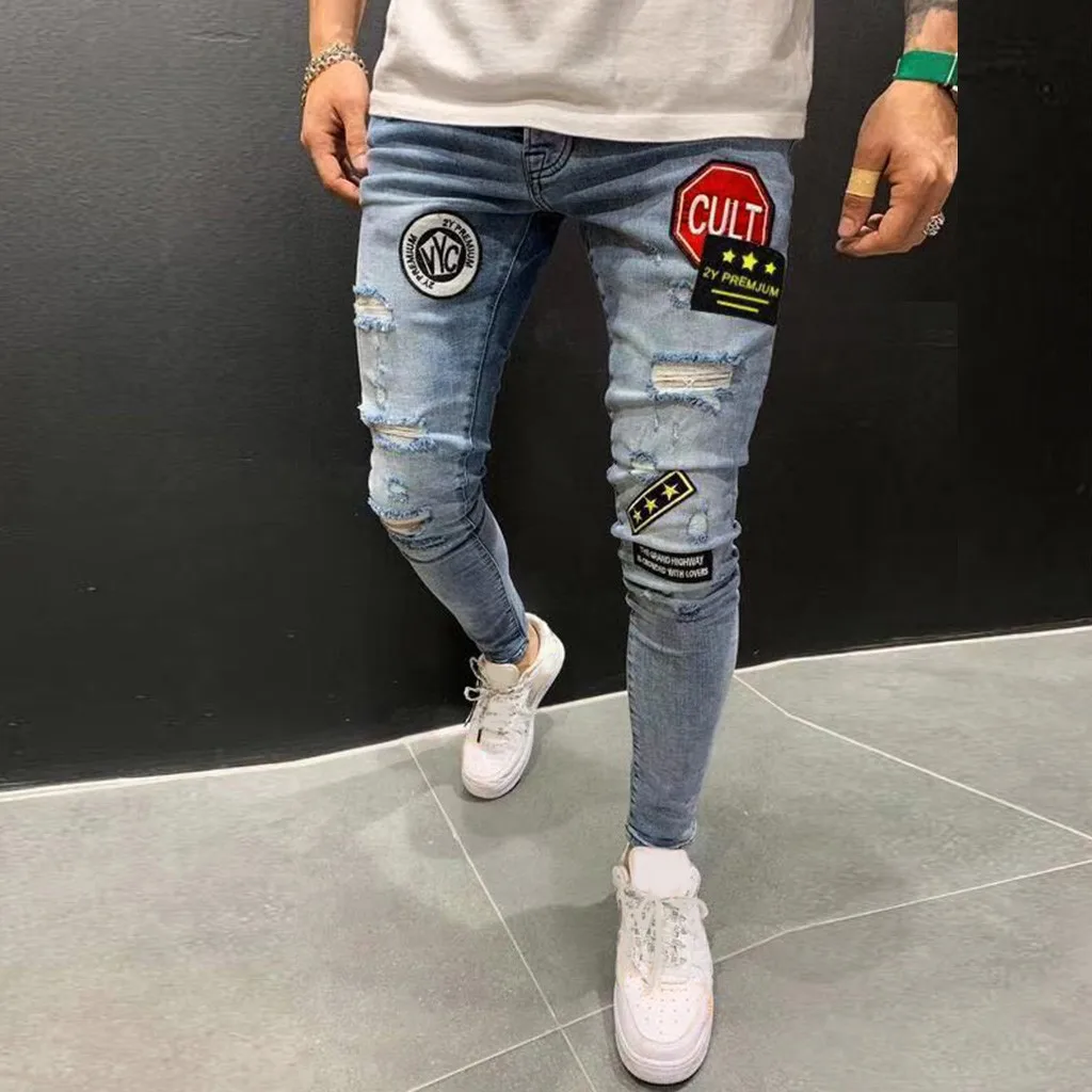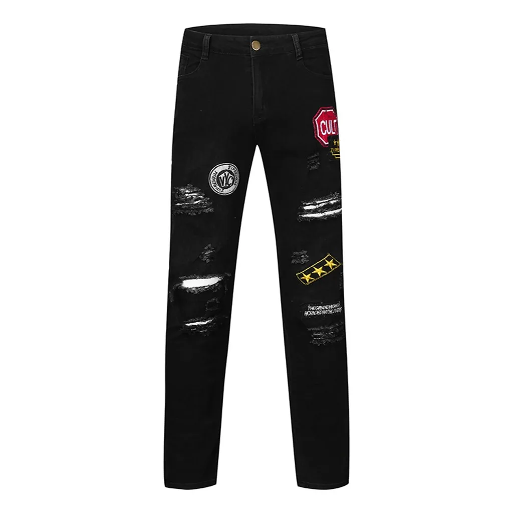 Мужские модные повседневные джинсовые прямые штаны рваные потертые джинсы длинные брюки