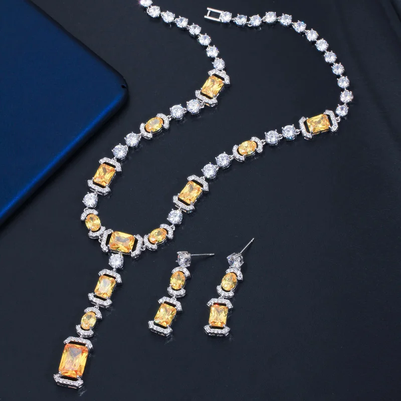 CWWZircons Великолепные Длинные квадратные Висячие серьги для вечеринки и ожерелье кубический циркон Свадебные Ювелирные наборы для невесты для женщин T355