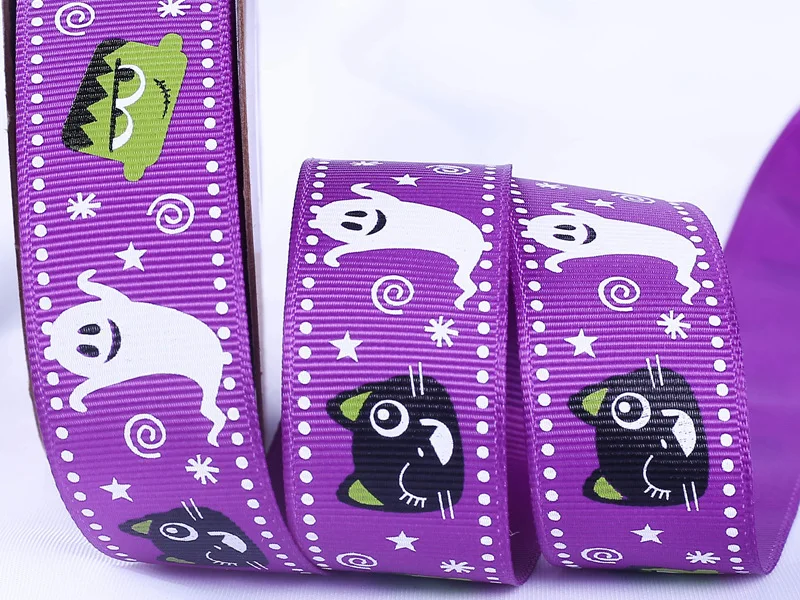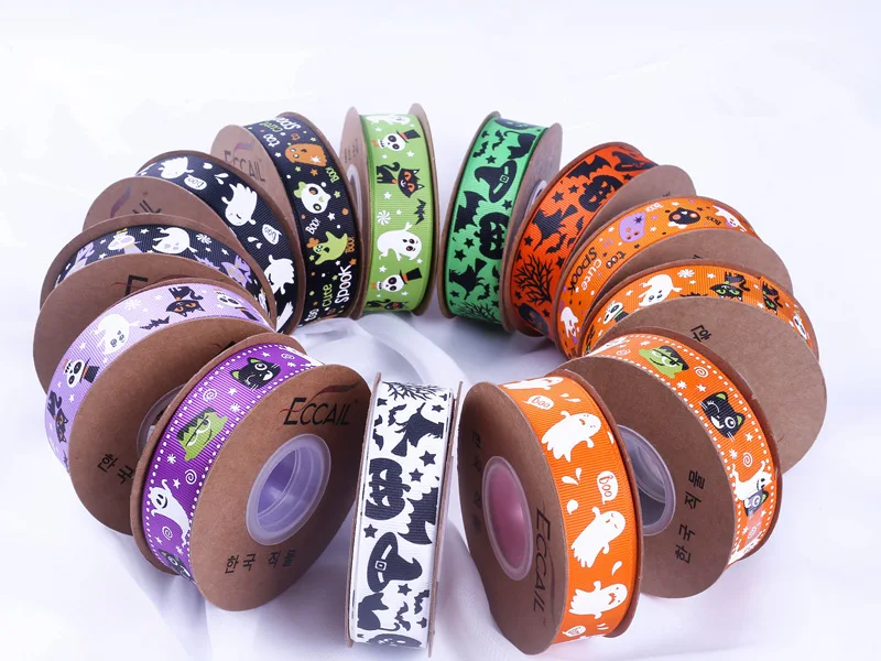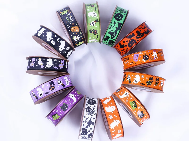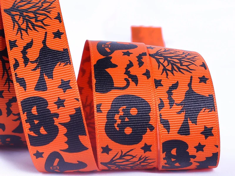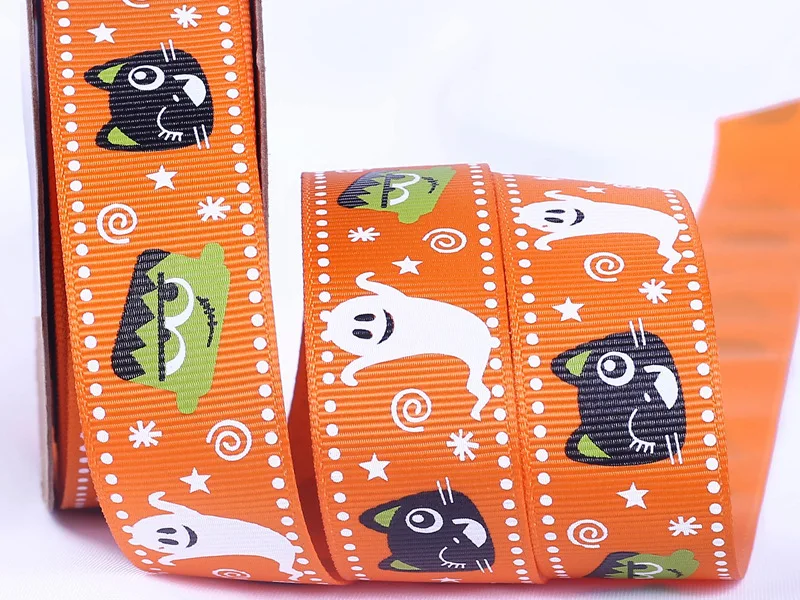 Лента для Хеллоуина, сделай сам бант для украшения волос букет упаковочная лента костюм Подарочная коробка шелковая Тыква Ведьма Печать Атласная Лента