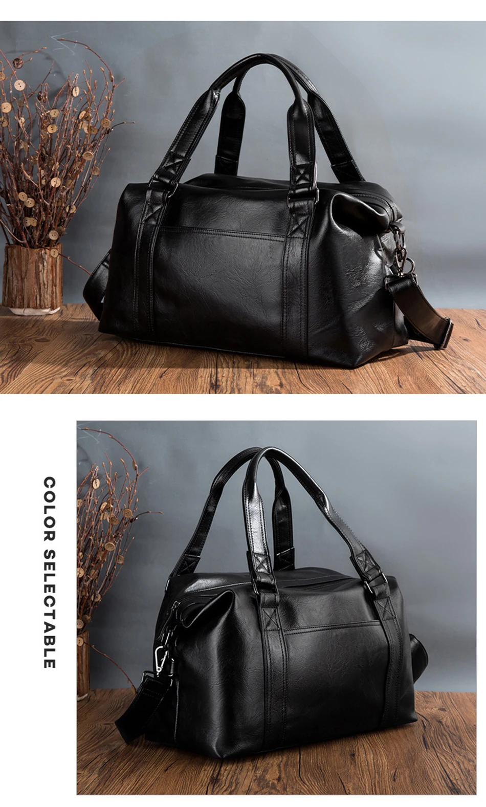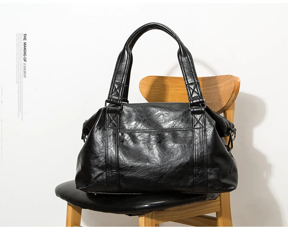 Кожаные дорожные сумки, большая вместительность, мужская спортивная сумка, водонепроницаемая ручная сумка, дорожная сумка, Повседневная сумка через плечо, черная сумка