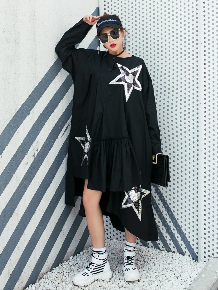 Асимметричное платье с длинным рукавом, свободное платье по колено, 2019, QYF280