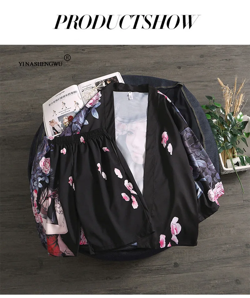 Yukata, женское и мужское традиционное японское кимоно, топ и штаны, набор, кимоно, кардиган, мужская летняя пляжная Тонкая Повседневная рубашка, Kimonos Femme