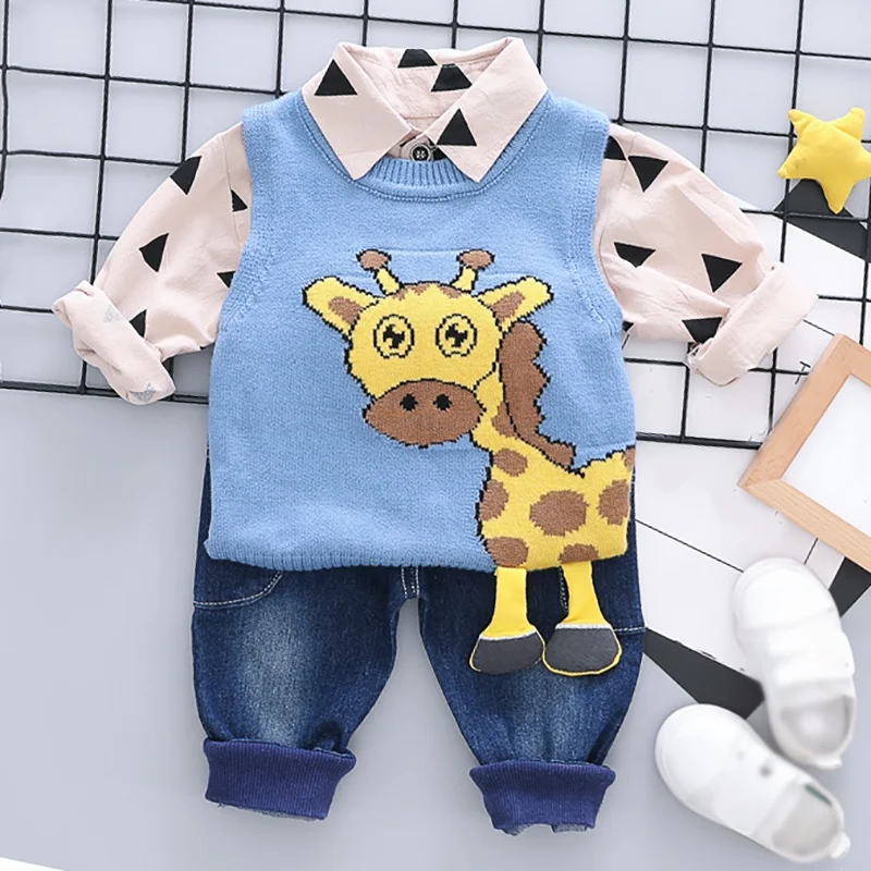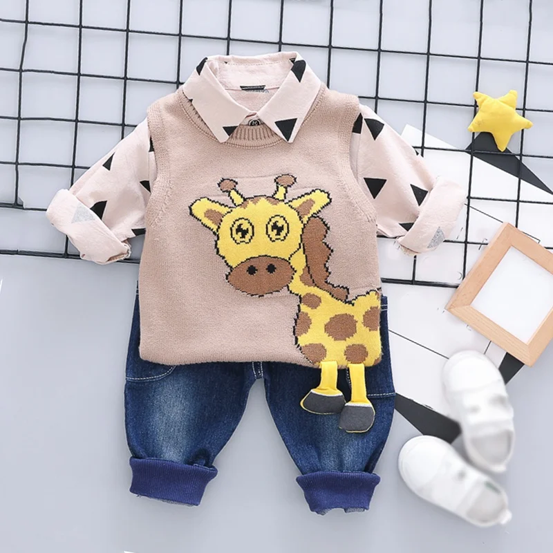 Осенняя футболка с длинными рукавами и геометрическим принтом для маленьких мальчиков свитер без рукавов с оленем джинсовые брюки Повседневная одежда