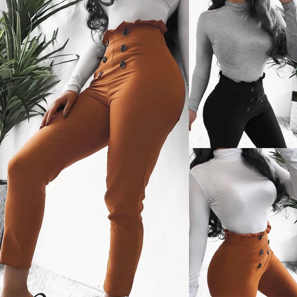 Женские офисные Стрейчевые Длинные обтягивающие брюки Palazzo с высокой талией