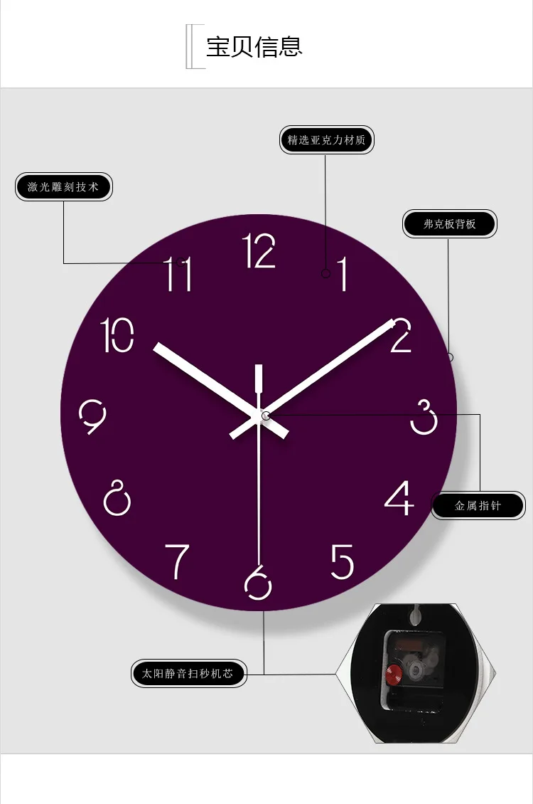 Wall Clock Modern Kitchen Clocks Watch Home Living Room Decorative Hanging Quartz Bedroom Minimalist Purple Round Slient Art