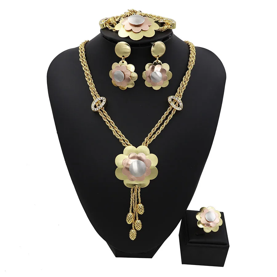 TSROUND золотой сет Дубай Цвет с украшением, подвеской в виде цветка, комплект в африканском стиле, оригинальная бижутерия нержавеющая сталь Femme нигерийский Свадебный Цепочки и ожерелья|