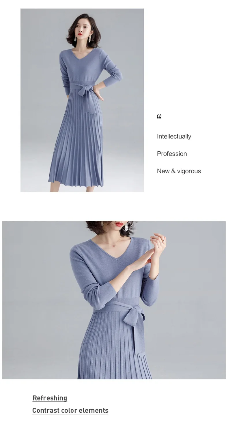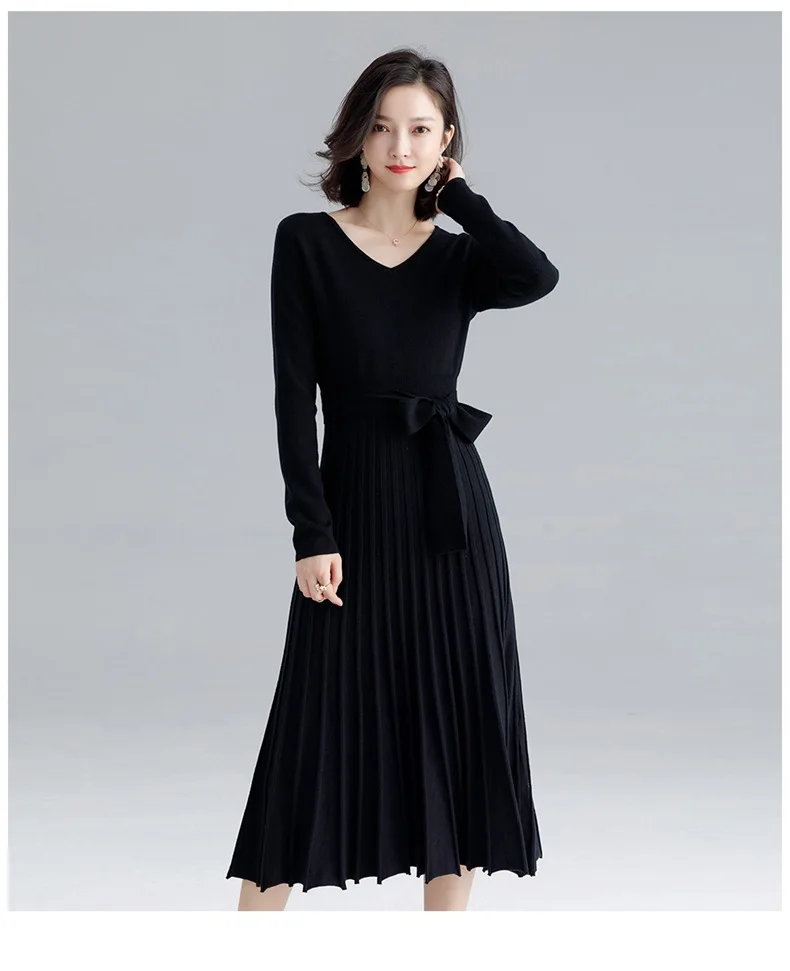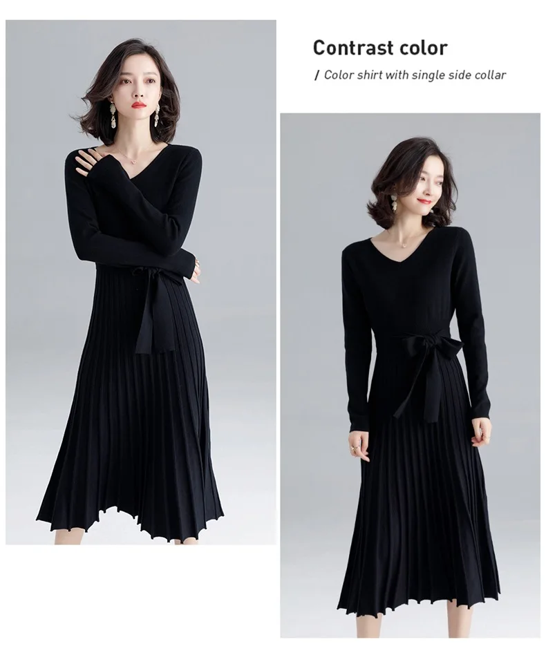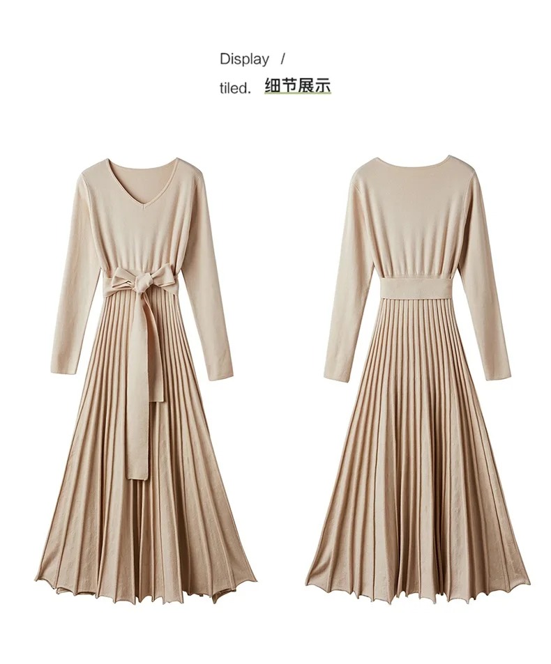 | Высококачественное женское трикотажное платье осень-зима, большое плиссированное платье с v-образным вырезом и длинным рукавом, трикотажное платье на шнуровке для женщин F1963 | Ткань: 50% вискоза 22% полиамид 28% lanon | |||