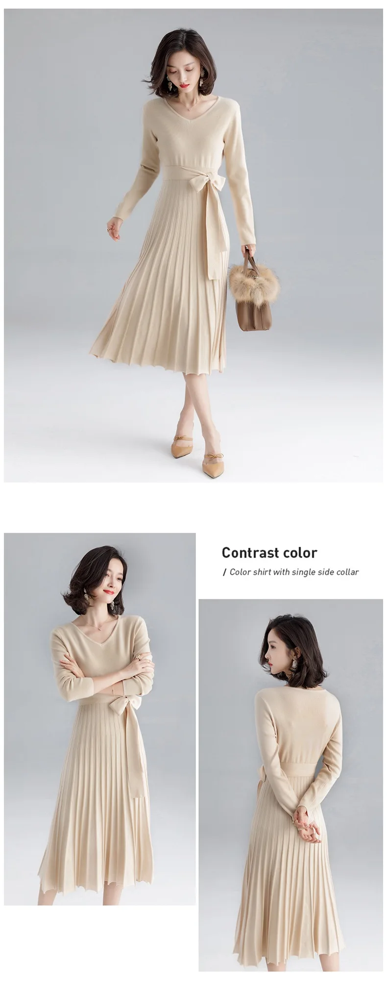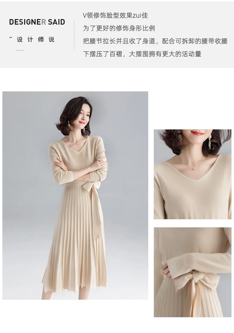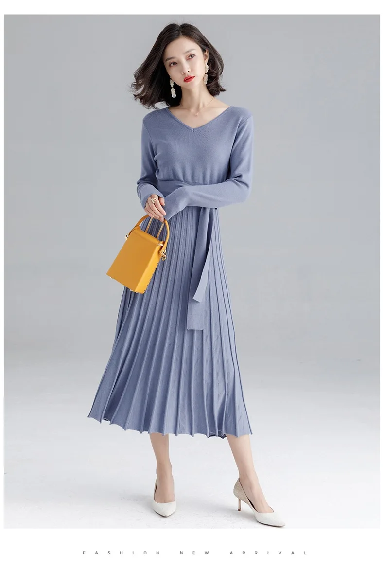 | Высококачественное женское трикотажное платье осень-зима, большое плиссированное платье с v-образным вырезом и длинным рукавом, трикотажное платье на шнуровке для женщин F1963 | Ткань: 50% вискоза 22% полиамид 28% lanon | |||