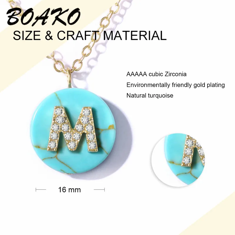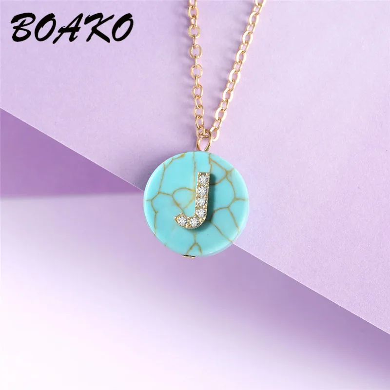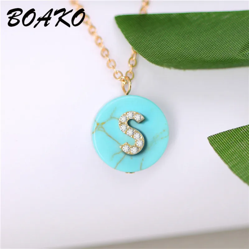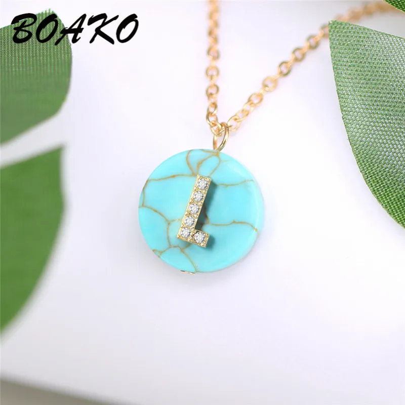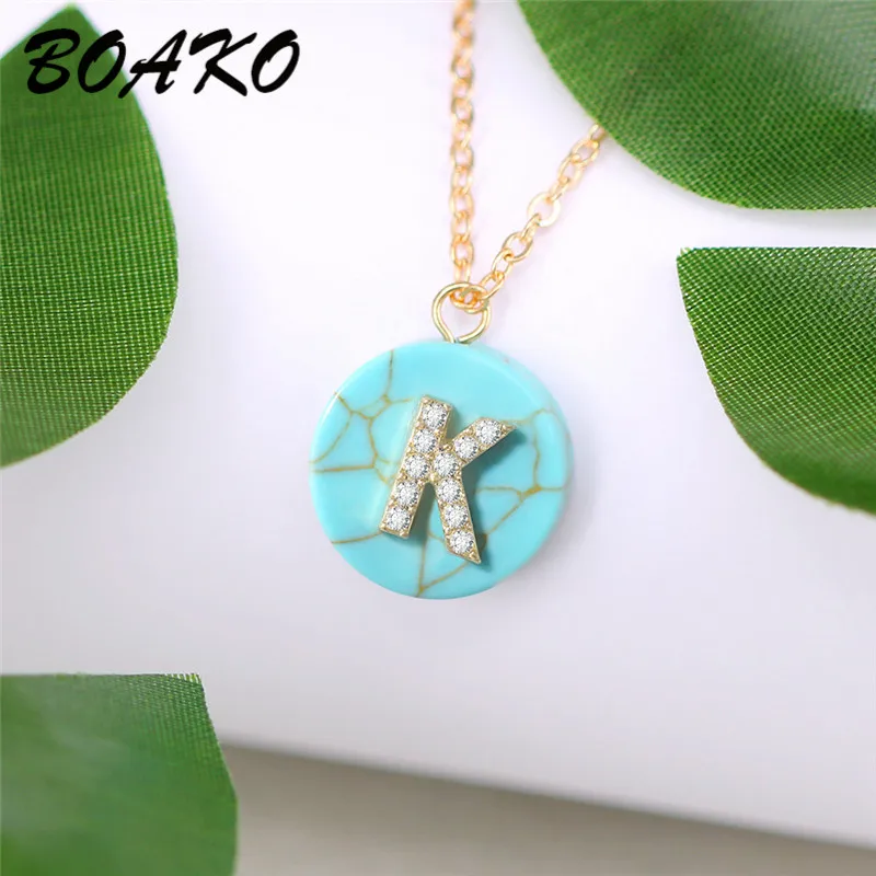 Длинное ожерелье с буквенным принтом для женщин и девочек, голубой бирюзовый круглый кулон с буквенным принтом, кулоны, фианиты, ювелирные изделия, рождественский подарок