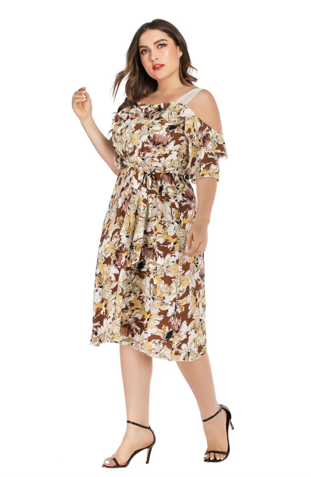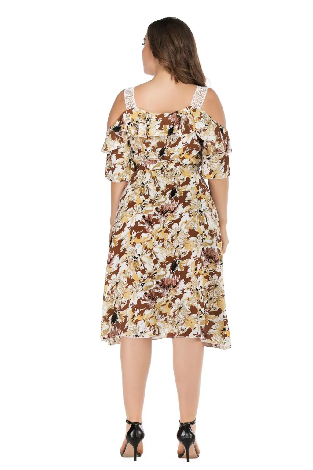 Женское пляжное платье макси 5XL размера плюс, летнее кружевное платье с открытыми плечами, оборками, вырезом лодочкой и цветочным принтом, 2019